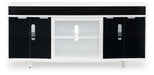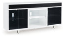 Combining a white high-gloss finish with black glass doors, this TV stand proves opposites really do attract. It's the perfect blend of modern style and functionality, with an electric fireplace option and ample space for your media devices, flat-screen TV and soundbar. What a smart choice on so many levels.