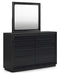 | Details | B768B4: Includes headboard, footboard and rails, Made with pine solids, veneers and engineered wood substrate, Textured black wood stain with waxy topcoat, Extra wide rails for a bench-like wrap around, Foundation/box spring required, sold separately, Mattress available, sold separately, Assembly required, B768B1: Includes dresser and mirror, Made with pine solids, veneers and engineered wood substrate, Textured black wood stain with waxy topcoat, Hardware-less design, 6 drawers with fully finished interiors, dovetail construction and ball-bearing side glides (top drawers felt lined), Mirror attaches to back of dresser, B768-46: Made with pine solids, veneers and engineered wood substrate, Textured black wood stain with waxy topcoat, Hardware-less design, 5 drawers with fully finished interiors, dovetail construction and ball-bearing side glides (top drawers with felt-lined bottoms), B768-92: Made with pine solids, veneers and engineered wood substrate, Textured black wood stain with waxy topcoat, Hardware-less design, 2 drawers with fully finished interiors, dovetail construction and ball-bearing side glides, 110V power supply with dual USB charging ports, Power cord included; UL Listed, | |