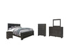 Details B249-46: Made with engineered wood (MDF/particleboard/plywood) and decorative laminate for the right balance of affordability and durability, Dark charcoal finish over replicated oak grain, Linear pulls with dark pewter-tone finish, 5 smooth-gliding drawers, Safety is a top priority, clothing storage units are designed to meet the most current standard for stability, ASTM F 2057 (ASTM International), Drawers extend out to accommodate maximum access to drawer interior while maintaining safety, Assembly required, B249-92: Made with engineered wood (MDF/particleboard/plywood) and decorative laminate for the right balance of affordability and durability, Dark charcoal finish over replicated oak grain, Linear pulls with dark pewter-tone finish, 2 smooth-gliding drawers, Assembly required, B249B1: Includes dresser and mirror, Made with engineered wood and decorative laminate, Dark charcoal finish over replicated oak grain, 7 smooth-gliding drawers; 3 drawer sizes, Linear pulls with dark pewter-tone finish, Mirror attaches to back of dresser, Safety is a top priority, clothing storage units are designed to meet the most current standard for stability, ASTM F 2057 (ASTM International), Drawers extend out to accommodate maximum access to drawer interior while maintaining safety , Assembly required, B249B4: Includes headboard, footboard and rails, Made with engineered wood (MDF/particleboard) and decorative laminate, Dark charcoal finish over replicated oak grain, Foundation/box spring required, sold separately, Mattress available, sold separately, Assembly required, Bed is compatible with an adjustable base,
