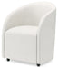 This fully upholstered desk chair makes a lasting impression in a simply stunning way. Its magnificent curves are enhanced with a neutral boucle upholstery that’s so pleasing to the eye. This bucket chair is the piece you’ve been looking for to elevate your contemporary home office. Plus, it’s set on casters so it’s easy to move around.