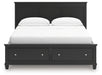| Details | Includes panel headboard, storage footboard with roll slats and rails , Made with hardwood solids, birch veneer and MDF substrate, Side rails feature laminated solid hardwood slat support rails (or LVL) with glued and screwed blocking for added strength, Black painted finish, Round metal drawer knobs with satin nickel-tone finish, 2 smooth-gliding drawers with ball-bearing side glides in footboard, Tapered feet, Bed does not require additional foundation/box spring; accommodates most zero clearance adjustable bases with the addition of a bunkie board, Mattress available, sold separately, Assembly required | |
