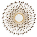 Light and bright, this accent mirror is a trendy take on wall decor. Its metallic spokes splay outward to create a sculpture-like frame. With goldtone and bronze-tone finishes, the piece is a reflection of your eye for contemporary design.