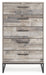 Part beach chic, part urban hip, this chest of drawers is everything you dreamed of, at a comfortably cool price. The butcher block whitewash finish over replicated pine grain lends a richly relaxed aesthetic that suits your sensibility. Dark pewter-tone drawer pulls and sled legs add a high design element. What an easy-breezy choice for a naturally beautiful bedroom retreat.