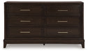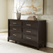 | Details | Made with hardwood solids, engineered wood and MDF substrates, Grayish brown wood-tone finish, Metal bar pulls with satin nickel-tone finish, 6 smooth-gliding drawers with dovetail construction and heavy duty ball-bearing side glides (top drawers felt lined) | |