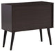 Open the door to clean-lined form and functionality with this accent cabinet. Its homey natural finish is enhanced with crisp white doors and pulls. Adjustable shelf caters to your needs.