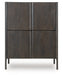 Details Doors and posts made with solid oak wood, Sides, top, back and interior made with oak veneer and engineered wood substrate, Espresso finish, 4 doors with push magnet function, 6 fixed shelves