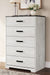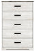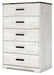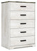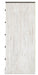 | Details | Made with engineered wood (MDF/particleboard/plywood) and decorative laminate for the right balance of affordability and durability, Whitewash replicated worn through paint, Top with rustic gray planked replicated oak grain with authentic touch, Pewter-tone pulls, 5 smooth-gliding drawers with vinyl-wrapped sides and back, Safety is a top priority, clothing storage units are designed to meet the most current standard for stability, ASTM F 2057 (ASTM International), Drawers extend out to accommodate maximum access to drawer interior while maintaining safety, Assembly required | |
