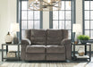 This reclining loveseat puts the win in winning. Its waterfall back design and doubly plump pillow top arms team up with soft chenille fabric to go for the goal. Ample seating room makes the comfort possibilities endless. Sit back and relax. You won’t go wrong with this reclining loveseat.