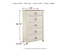 | Details | Made of engineered wood (MDF/particleboard) and decorative laminate, Whitewash replicated worn through paint with authentic touch, Replicated wood grained block pattern with authentic touch, Antiqued brass-tone ring-pull hardware, 5 smooth-gliding drawers, Safety is a top priority, clothing storage units are designed to meet the most current standard for stability, ASTM F 2057 (ASTM International), Drawers extend out to accommodate maximum access to drawer interior while maintaining safety, Assembly required | |