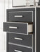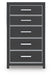 | Details | Made with engineered wood (MDF/particleboard/plywood) and decorative laminate for the right balance of affordability and durability, Matte black finish with subtle replicated wood grain, Decorative laminate replicates natural or man-made material surfaces with consistent color, pattern and texture, Chrome-tone accents, Large-scale chrome-tone handles with faceted details, 5 smooth-gliding drawers, Drawer interiors are lined with a faux linen laminate for a clean, finished look, Safety is a top priority, clothing storage units are designed to meet the most current standard for stability, ASTM F 2057 (ASTM International), Drawers extend out to accommodate maximum access to drawer interior while maintaining safety, Minor assembly required | |